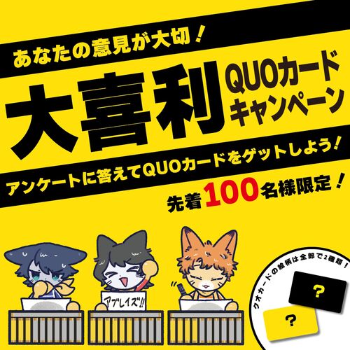 ご成約者様限定!《大喜利QUOカードキャンペーン!》スタート! お客様の一言が私たちの宝物!ご成約者様には特別なお願いがありますたった一つのアンケート項目にお答えいただくだけで、特製オリジナルQUOカード500円分をその場でプレゼント!瞬く間に完了…
